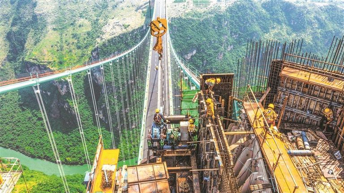 全长2890米、主跨径1420米、垂直高度625米——世界第一高桥的建设参数在贵州境内的北盘江刷新。