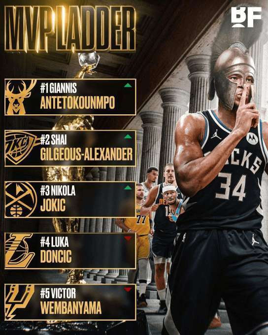 近日,美媒BasketballForever发布了截至新赛季第二周的MVP排行榜,字母哥、亚历山大、约基奇、东契奇、文班亚马五位巨星赫然在列,那么下面我们就来看看具体的排名情况。