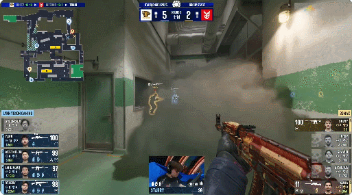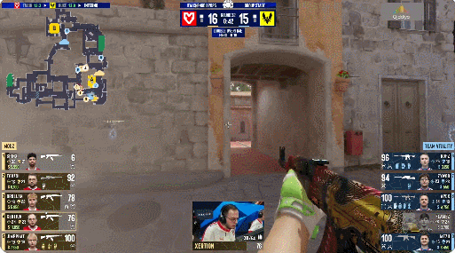 图二Nuke,MOUZ丢掉手枪局后xertioN法玛斯+加利尔6枪爆头杀4.9个单人翻盘,但薯薯英雄AK外场3杀也完成翻盘。Vitality乘势打出一波7-1进攻潮。换边火仔先抄匪厅完成经济局翻盘,后在内场刷屏4杀;ropz在铁板4杀,大黄蜂以铁血防守扳回一城。