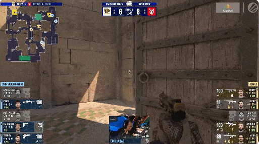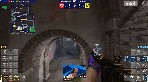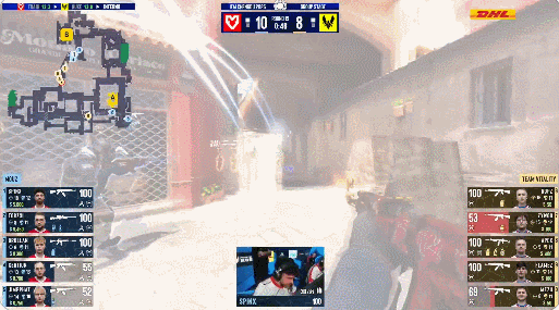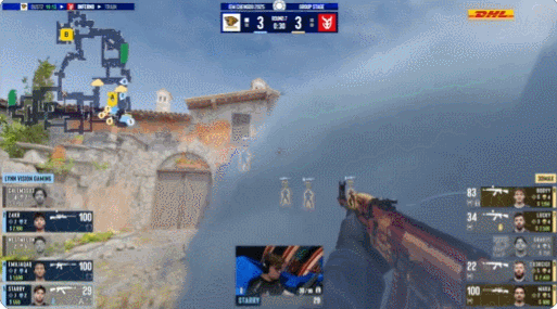 图二Mirage,FaZe拿到手枪局4-1开局,然而随后FL1T单人统治全场,VP越战越勇连下10局,轻松扳回一城。
