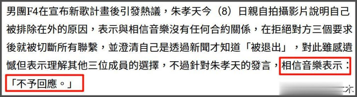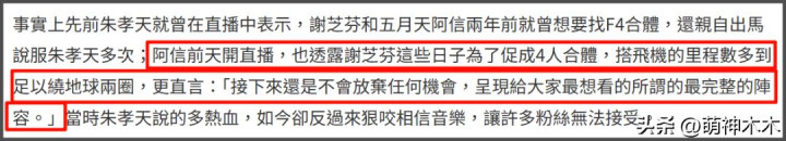 但不少网友对朱孝天的说法并不是很信服,认为是朱孝天太拧巴矫情,想象不出到底是什么样的要求,能让相信音乐放弃F4全员合体的计划。
