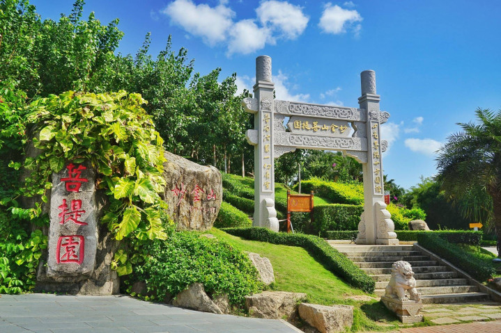 走过人流最多的海上观音,来到妙金山菩提园立刻会有身处世外桃源的静谧惬意感。园内种植了大片菩提树,作为佛教圣树,菩提是智慧的象征,走在园中感受到的尽是“一花一世界,一叶一菩提”的禅意。
