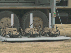 机器狼的参数挺牛的:背负能力20公斤,续航时间达两个半小时,快速换电池只需30秒。
