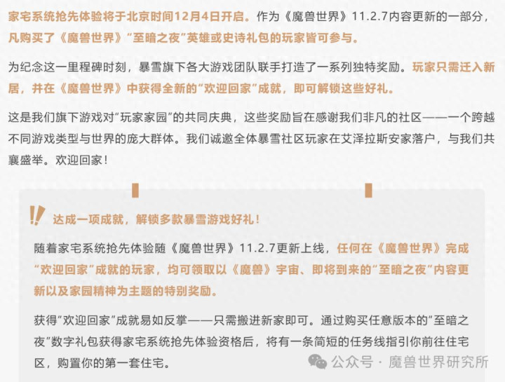 此外,一项独立于《魔兽世界》成就之外的全新限时活动——“欢迎来到住宅区!”也即将开启,参与即可赢取一张史诗品质活动卡牌。